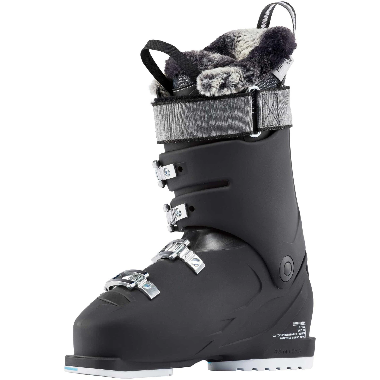 Dotée d’un collier et d’un chausson spécifiquement conçu pour la morphologie féminin, la PURE ELITE 90 propose un indice de flex de 120 ajustable en fonction de la puissance souhaitée, associé à une coque très étroite – skinny fit – de 98 mm.