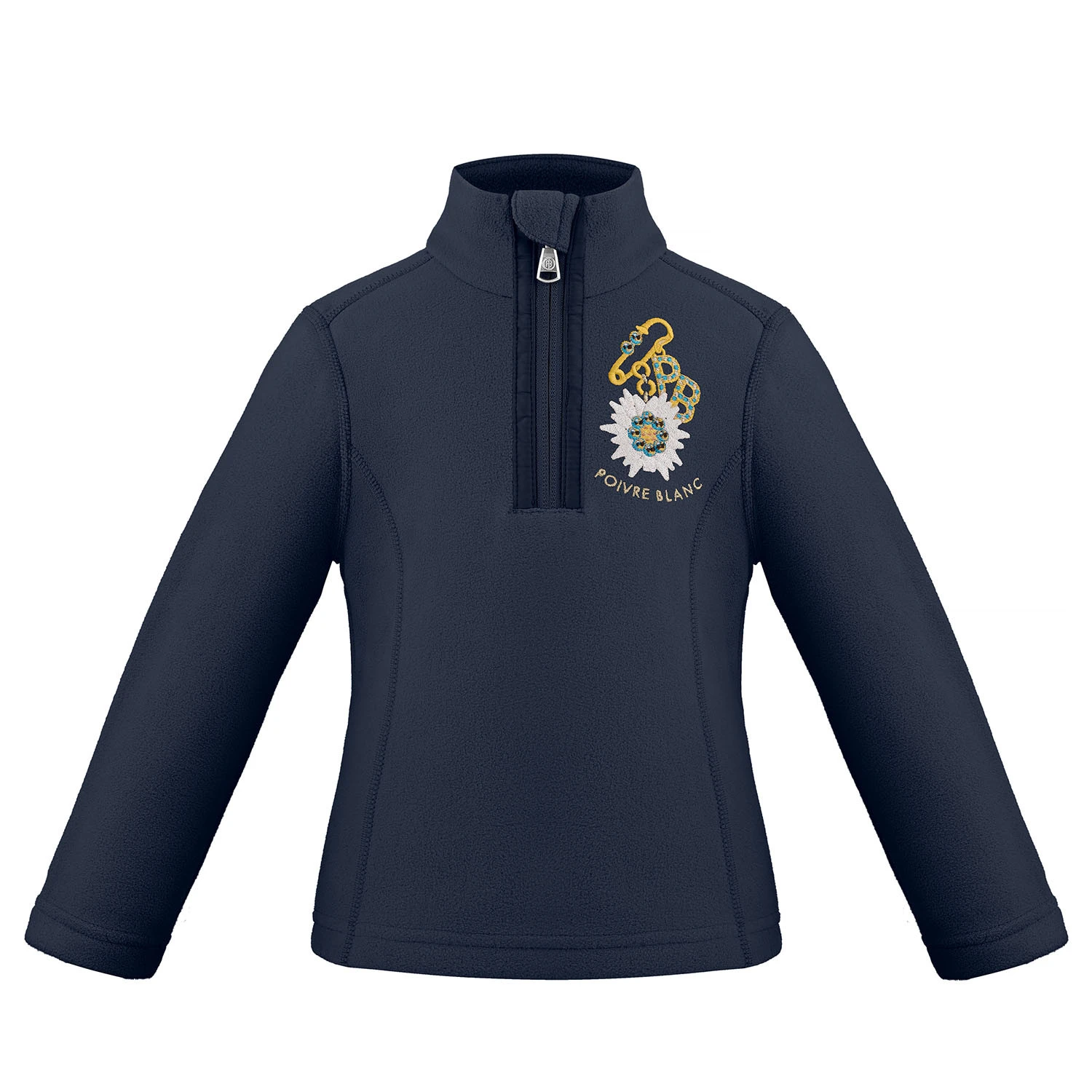 Un pull en polaire à fermeture éclair quart de coupe avec une coupe ajustée. Le tissu est à la fois doux et chaud mis en valeur par une jolie broderie pingouin. Idéal pour un usage quotidien ou sous des combinaisons de ski.