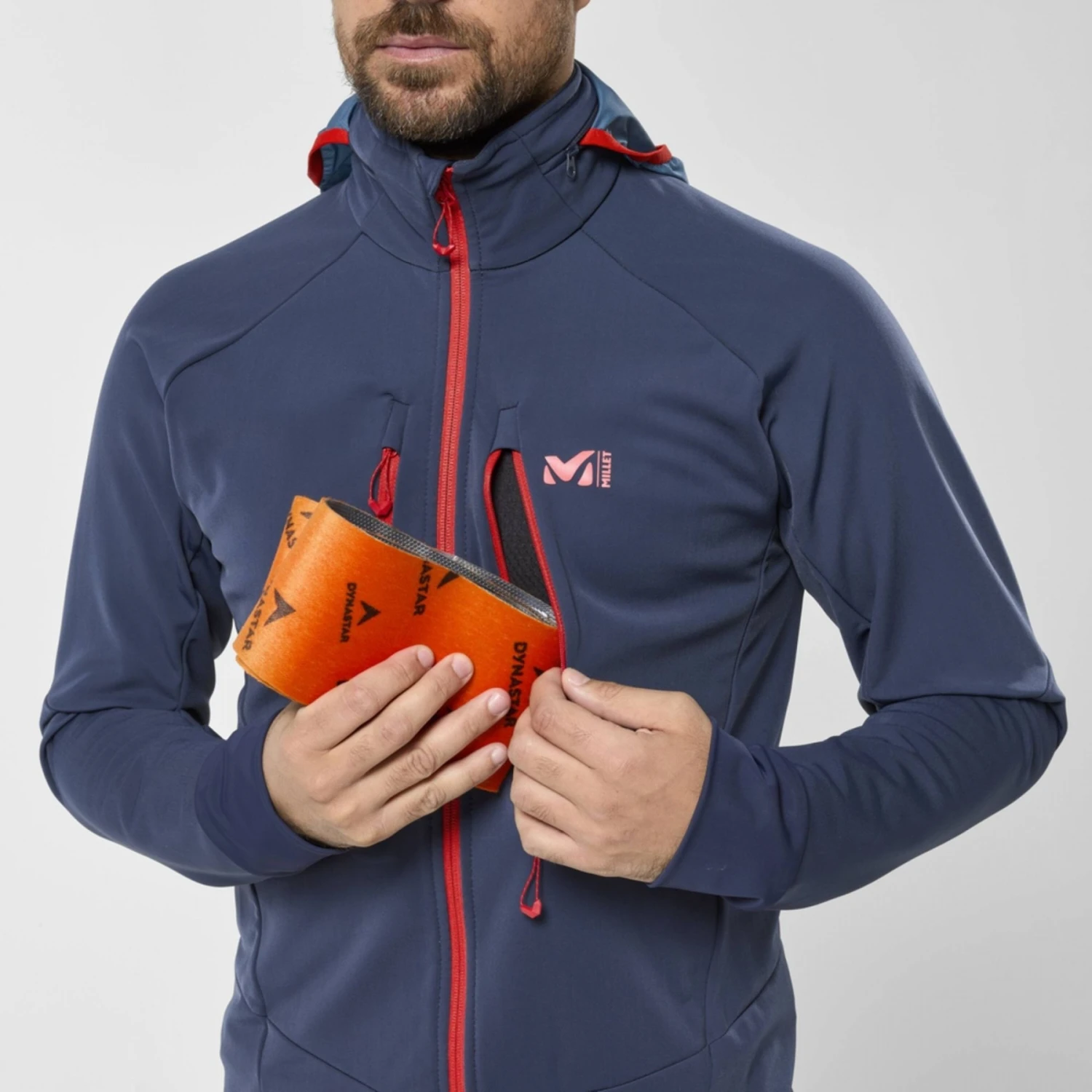 Le silicone anti-dérapant en bas de veste assure un maintien parfait sur le pantalon et les 2 poches poitrine prévoient le rangement simplifié des peaux.