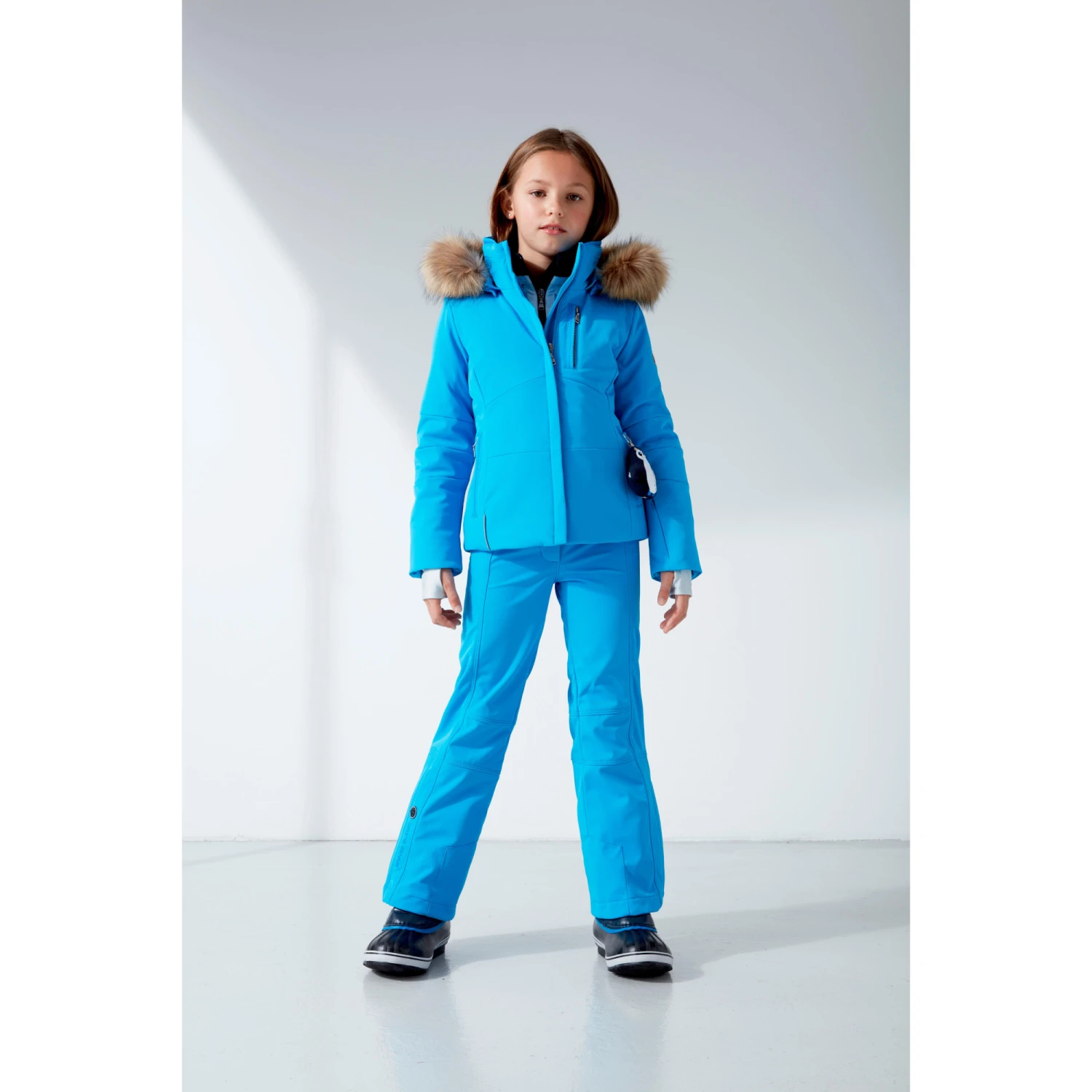 En plus de sa capuche en fausse fourrure amovible, elle bénéficie de tous les éléments fonctionnels exigés par la pratique du ski, sans oublier le porte-clés en bonus.