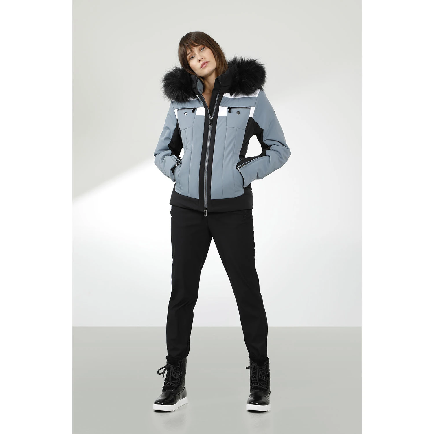 Cette Veste de Ski Stretch courte, en version unie ou multicolore, marque cette veste comme une nouveauté Poivre Blanc. Elle est dotée de manches articulées fantaisie, d’un large col montant et d’une capuche amovible et ajustable. Sportive et sexy à la fois cette pièce fera tourner la tête partout.