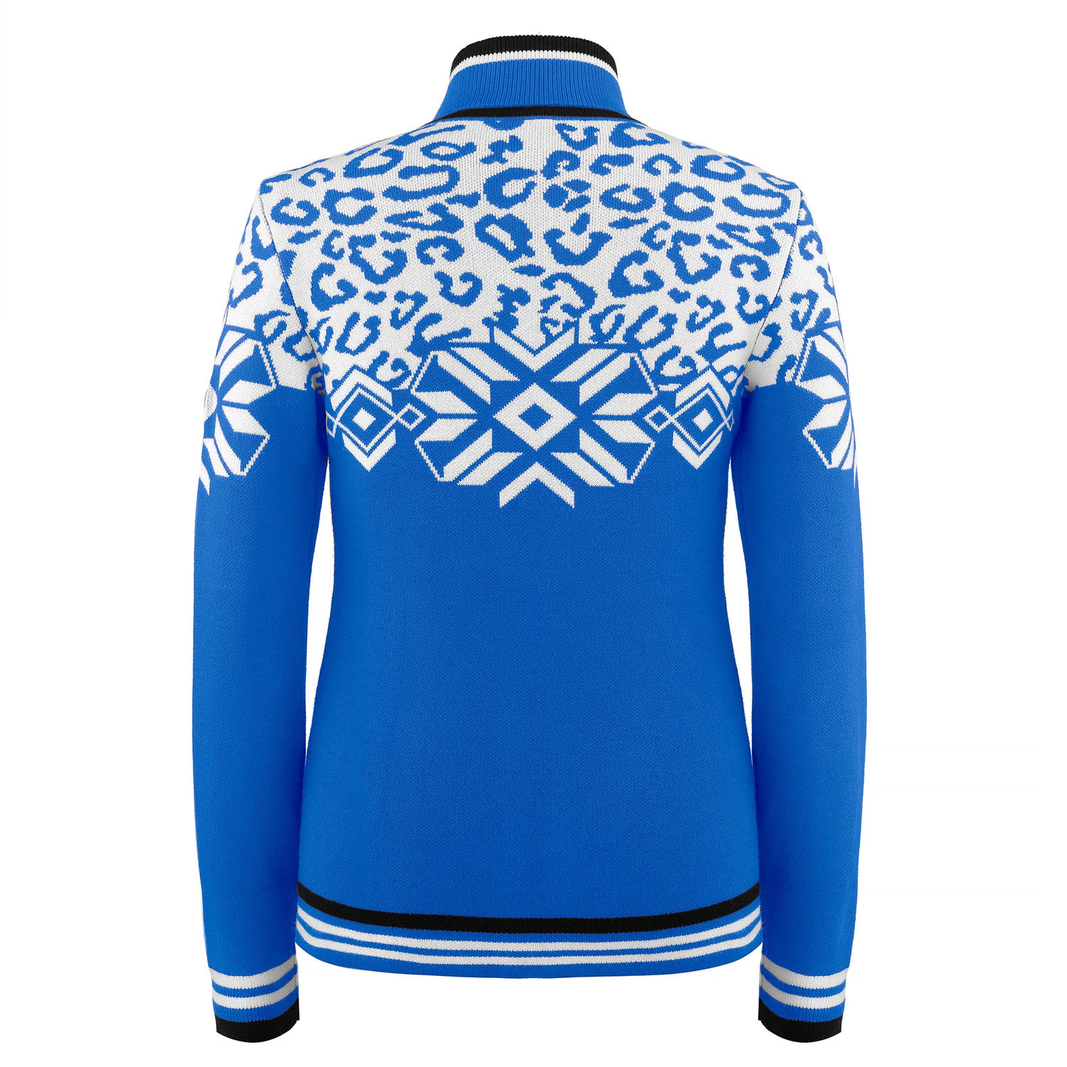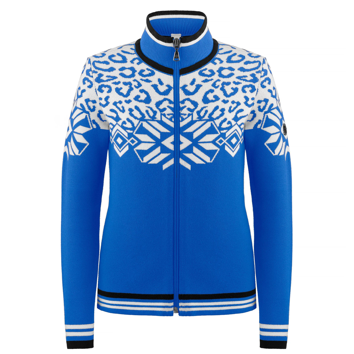 Le design en cristal de glace et léopard de cette veste en tricot fait une déclaration de mode saisissante avec le caractère sportif de Poivre Blanc.