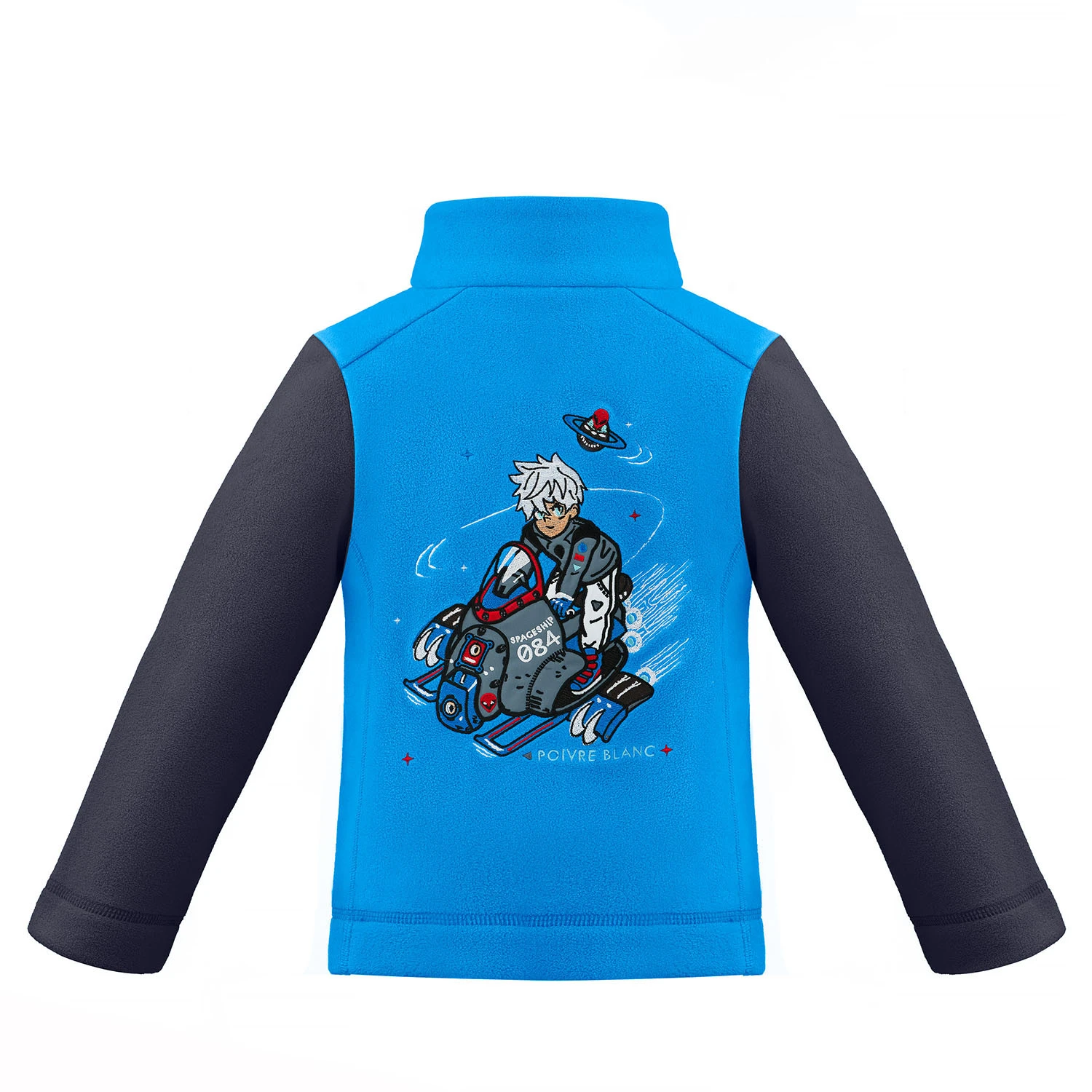 pilling Satiny piping in tonal color at front zipper YKK zipper with rubber puller Chin guard Embroidered logo