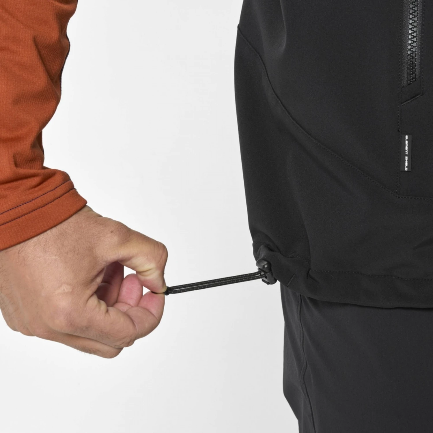 - – Matière principale : ELEMENT SHIELD ACTIV DYNAMIC LIGHT // 94% Polyester – 6% Elasthanne // Respirabilité : 5 000 g.m².24h ; Imperméabilité : 5 000 mm ; Traitement déperlant durable DWR PFC Free Teflon EcoElite™